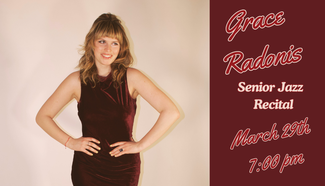 Grace Radonis is a jazz vocalist, composer, and guitarist, as well as a graduating music major at Skidmore College. Known for her expressive phrasing and thoughtful dynamics, Grace connects with audiences through her lively sets and her embodiment of emotion tied to the tunes she performs. As of late, she has gigged in various locations including multiple NYC venues, most notably the Botanical Gardens, Westchester County, The Hudson Valley, and the famous Daryl’s House. At Skidmore, she has participated semesterly in Small Jazz Combos, while working with her own combo, The Grace Kelly Quartet, to record her first jazz record Memory Box. Alongside her work as a student and professional, Grace has hosted multiple “Jazz Nights” at her apartment, a jazz jam session with a house band (The Grace Kelly Quartet) built on fun and inclusivity for all musicians and music-enjoyers alike!